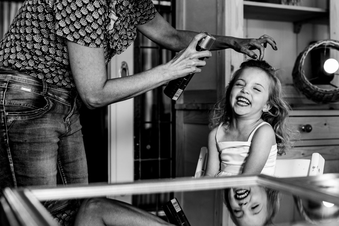 Wat is het toch bijzonder om je kinderen erbij te hebben op je bruiloft! De kinderen van Herman en Daniëlle, Sem en Rosa, werden overal bij betrokken. ’s Ochtends maakten de meiden zich in het huis van Herman en Daniëlle klaar. Het was hier een drukke en gezellige boel! De mannen waren bij de ouders van Herman, waar het heerlijk rustig was. Toen Herman zijn bruid ophaalde en het trouwboeket overhandigde, mocht Sem ook een echt boeketje aan Rosa geven. Niet alleen Herman stond versteld van hoe prachtig Daniëlle eruit zag, maar ook Sem had een blik van meer dan duizend woorden.